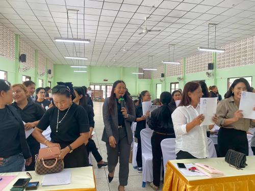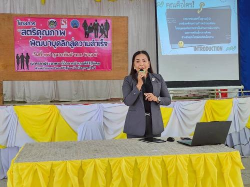โครงการ “สตรีคุณภาพ พัฒนาบุคลิกสู่ความสำเร็จ” ได้รับการสนับสนุนจากเงินกองทุนพัฒนาบทบาทสตรีจังหวัดสุราษฎร์ธานี ประเภทเงินอุดหนุน จำนวน 20,000 บาท โครงการฯ ในครั้งนี้ เพื่อส่งเสริมให้สตรีได้รับความรู้และทักษะในการพัฒนาบุคลิกภาพ การสื่อสาร การสร้างความมั่นใจ และการวางตัวอย่างเหมาะสม อันจะนำไปสู่การเสริมสร้างภาพลักษณ์ที่ดี การเพิ่มโอกาสในการประสบความสำเร็จในชีวิตและการทำงาน รวมถึงการเป็นพลังสำคัญในการพัฒนาครอบครัวและสังคม ซึ่งสตรีจำนวนไม่น้อยยังขาดโอกาสในการพัฒนาบุคลิกภาพและทักษะด้านการสื่อสาร การแสดงออกและการเสริมสร้างภาพลักษณ์ที่เหมาะสม ซึ่งอาจส่งผลต่อความมั่นใจ การเข้าสังคม และโอกาสในการพัฒนาตนเอง ทั้งในด้านอาชีพและบทบาททางสังคม การส่งเสริมให้สตรีมีบุคลิกภาพที่ดีและเหมาะสมจึงเป็นการพัฒนาศักยภาพภายใน ควบคู่กับการสร้างทัศนคติที่ดีต่อตนเองและผู้อื่น โครงการฯในวันนี้มีการบรรยายในหัวข้อ การพัฒนาศักยภาพการเป็นผู้นำของสตรี/องค์กรสตรี พัฒนาศักยภาพด้านการมีภาวะผู้นำ เป็นแกนนำในการพัฒนา เศรษฐกิจ สังคม การเมือง พัฒนาทักษะอาชีพ ด้านการสื่อสาร พัฒนาบุคลิกภาพ การเพิ่มประสิทธิภาพการบริหารจัดการหนี้กองทุนพัฒนาบทบาทสตรี การตรวจสอบหนี้ การเยี่ยม ติดต่อลูกหนี้ ตักเตือนทวงถามลูกหนี้ การฝึกบุคลิกภาพเน้นการพัฒนาทั้งภายในและภายนอก การปรับท่ายืน เดิน นั่ง ให้สง่ามั่นใจ การสื่อสารชัดเจนและมีมารยาท การแต่งกายที่เหมาะสม การสร้างความมั่นใจจากภายในผ่านการคิดบวก ซึ่งได้รับเกียรติจาก ดร.ชนัดดา สงพัฒน์แก้ว PhD.การบริหารแห่งรัฐ และนายสุริยา น้ำขาว ผู้ช่วยสาธารณสุขอำเภอคีรีรัฐนิคม เป็นวิทยากรให้ความรู้ในครั้งนี้