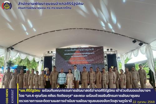 ในการนี้ นางละลินดา แดงก่อเกื้อ พัฒนาการอำเภอคีรีรัฐนิคม พร้อมด้วยเจ้าหน้าที่สำนักงานพัฒนาชุมชนอำเภอคีรีรัฐนิคม หัวหน้าคณะทำงานขับเคลื่อนกองทุนพัฒนาบทบาทสตรีตำบลทุกตำบล และคณะกรรมการพัฒนาสตรีจังหวัด เข้าร่วมรับมอบนโยบายฯ ณ กลุ่มโรงทอผ้าศรีวิชัย - ทับเที่ยง อำเภอพุนพิน จังหวัดสุราษฎร์ธานี