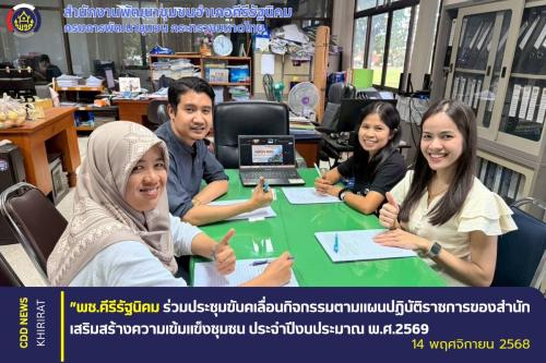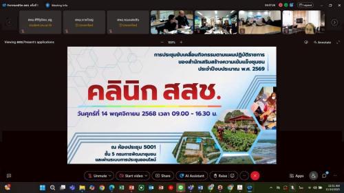 ในการนี้ สำนักงานพัฒนาชุมชนอำเภอคีรีรัฐนิคม โดยนางละลินดา แดงก่อเกื้อ พัฒนาการอำเภอคีรีรัฐนิคม พร้อมด้วยเจ้าหน้าที่พัฒนาชุมชน สำนักงานพัฒนาชุมชนอำเภอคีรีรัฐนิคม ร่วมประชุม กรมการพัฒนาชุมชน ขับเคลื่อนกิจกรรมตามแผนปฏิบัติราชการของสำนักเสริมสร้างความเข้มแข็งชุมชน ประจำปีงบประมาณ พ.ศ.2569 : คลินิก สสช.ผ่านระบบอิเล็กทรอนิกส์ (Cisco Webex Meetings) ในการรับมอบแนวทางเพื่อขับเคลื่อนงานพัฒนาชุมชนในปีงบประมาณ พ.ศ 2569 ต่อไป
