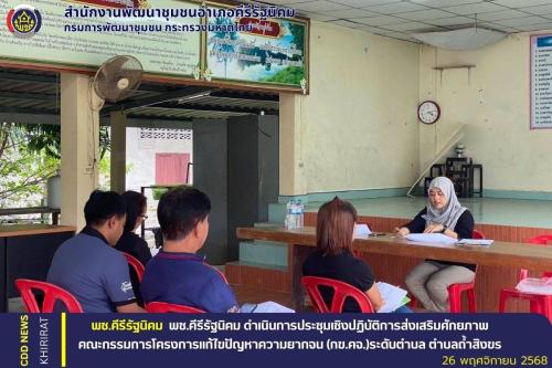 ในการนี้ เจ้าหน้าที่พัฒนาชุมชนอำเภอคีรีรัฐนิคม ได้ชี้แจงวัตถุประสงค์และแนวทางการดำเนินงานโครงการแก้ไขปัญหาความยากจน (กข.คจ.) ได้ทบทวนให้ความรู้ตามหัวข้อ ดังนี้