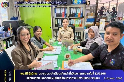 พช.คีรีรัฐนิคม ประชุมประจำเดือนเจ้าหน้าที่พัฒนาชุมชน ครั้งที่ 12/2568 เพื่อทบทวน และวางแผนขับเคลื่อนการดำเนินงานพัฒนาชุมชน