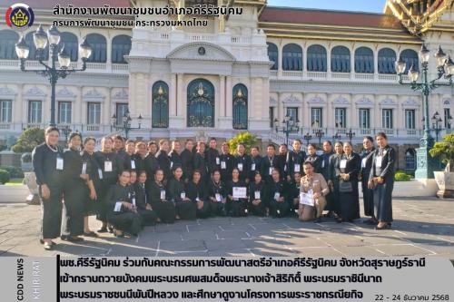 นางละลินดา แดงก่อเกื้อ พัฒนาการอำเภอคีรีรัฐนิคม มอบหมายให้นางจรัสศรี จิตราภิรมย์ นักวิชาการพัฒนาชุมชนชำนาญการ และนางสาวผกาวรรณ ราชรักษ์ นักวิชาการพัฒนาชุมชนปฏิบัติการ พร้อมด้วยคณะกรรมการพัฒนาสตรีอำเภอคีรีรัฐนิคม เข้าร่วมโครงการกราบถวายบังคมพระบรมศพ สมเด็จพระนางเจ้าสิริกิติ์ พระบรมราชินีนาถ พระบรมราชชนนีพันปีหลวง และศึกษาดูงานโครงการพระราชกรณียกิจ