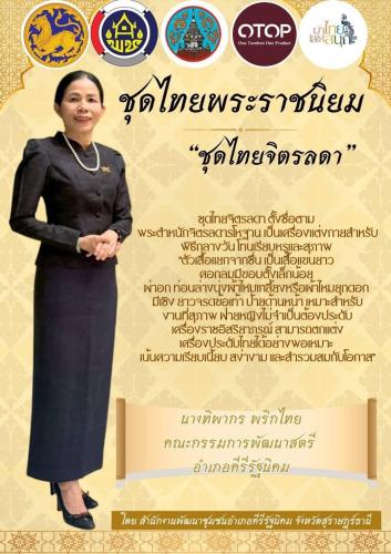 โดย นางทิพากร พริกไทย คณะกรรมการพัฒนาสตรีอำเภอคีรีรัฐนิคม ร่วมรณรงค์ประชาสัมพันธ์ เชิญชวนทุกท่าน ร่วมสวมใส่ชุดไทยพระราชนิยม มรดกอันทรงคุณค่าสมเด็จพระนางเจ้าสิริกิติ์ พระบรมราชินีนาถ พระบรมราชชนนีพันปีหลวง มรดกแห่งความภาคภูมิใจในความเป็นไทย ร่วมอนุรักษ์และสืบสานเอกลักษณ์ความงดงามของผ้าไทยให้คงอยู่คู่แผ่นดินไทยตลอดไป