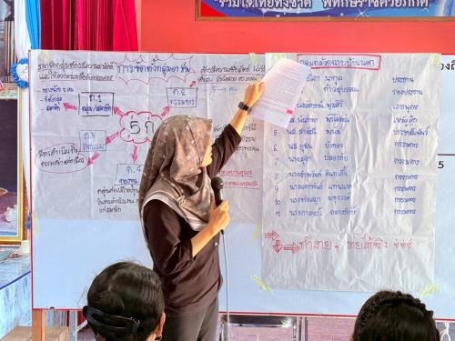 ในการนี้ เจ้าหน้าที่พัฒนาชุมชนอำเภอคีรีรัฐนิคม ได้แนะนำแนวทางโครงการ เสริมสร้างความรู้ ความเข้าใจ เกี่ยวกับกระบวนการจัดตั้งและพัฒนากลุ่มอาชีพ สร้างความรู้ความเข้าใจการจัดตั้งกลุ่มอาชีพ เลือกคณะกรรมการกลุ่มตามหลัก 5 ก. วัตถุประสงค์ หลักการ รวมถึงวิธีการดำเนินงานและแผนงานของกลุ่มอาชีพ เพื่อการพัฒนาทักษะ มีความเข้มแข็ง พร้อมจดทะเบียนจัดตั้งกลุ่มอาชีพต่อไป