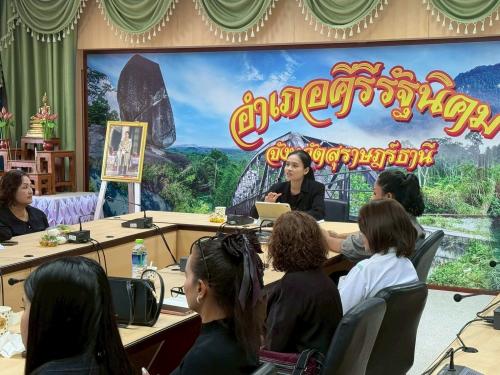 นางละลินดา แดงก่อเกื้อ พัฒนาการอำเภอคีรีรัฐนิคม พร้อมด้วยเจ้าหน้าที่สำนักงานพัฒนาชุมชนอำเภอคีรีรัฐนิคม ดำเนินการประชุมเชิงปฏิบัติการส่งเสริมการบูรณาการกลไกการขับเคลื่อนการขจัดความยากจน โดยมีกลุ่มเป้าหมายเข้าร่วมประชุม ประกอบด้วยทีมปฏิบัติการขจัดความยากจนและพัฒนาคนทุกช่วงวัยอย่างยั่งยืน ตามหลักปรัชญาของเศรษฐกิจพอเพียงในระดับพื้นที่ คณะกรรมการพัฒนาสตรีอำเภอ (กพส.อ.) คณะกรรมการสมาคมชมรมผู้นำ อช และเครือข่ายปราชญ์สัมมาชีพ จำนวน 25 คน