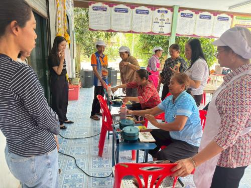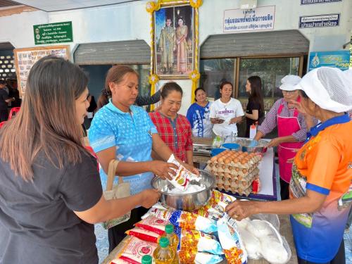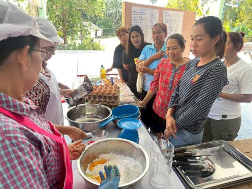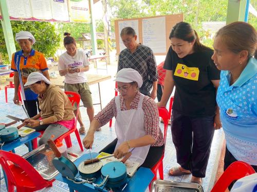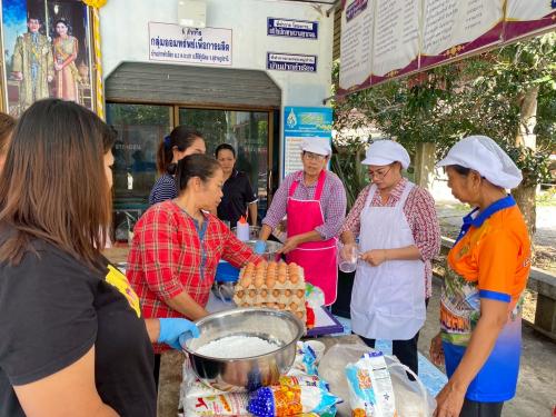 หลังจากนั้นผู้เข้าร่วมกิจกรรมได้ร่วมกัน ฝึกอาชีพ โดยได้รับเกียรติจากนางกัญญ์วรา ศรีชาย เป็นวิทยากรบรรยายและสาธิต และนางสาวผกาวรรณ ราชรักษ์ นักวิชาการพัฒนาชุมชนปฏิบัติการ ร่วมเป็นวิทยากรกระบวนการกลุ่ม ฝึกปฏิบัติ การทำขนมทองม้วน ซึ่งเป็นอาชีพที่ทำได้ง่าย ชาวบ้านสามารถเข้าถึงวัตถุดิบ และสามารถทำเองได้ที่ครัวเรือน เพื่อลดรายจ่าย และเพิ่มรายได้ เสริมสร้างการบริหารจัดการเงินที่มีประสิทธิภาพ
