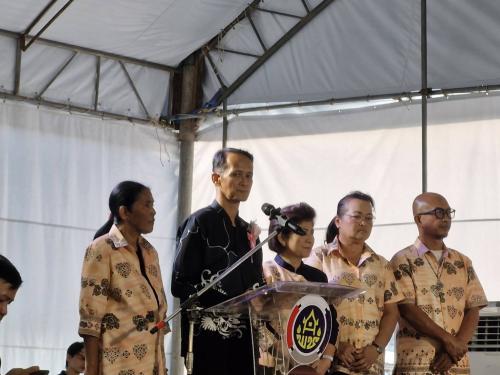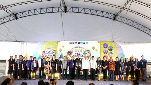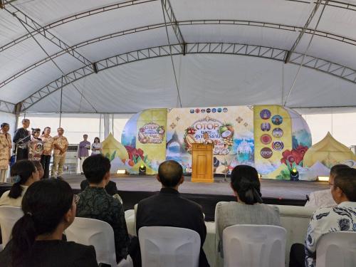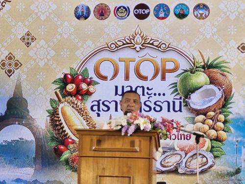 วันที่ 2 เมษายน 2569 เวลา 16.30 น. ณ เวทีกลางสนามหน้าศาลากลางจังหวัดสุราษฎร์ธานี จังหวัดสุราษฎร์ธานี นายจุมพฏ วรรณฉัตรสิริ ผู้ว่าราชการจังหวัดสุราษฎร์ธานี เป็นประธานในพิธีเปิดงานมหกรรมจัดแสดงและจำหน่ายผลิตภัณฑ์ชุมชน (OTOP) และผลิตผลการเกษตร ภายใต้ธีม “มาตะ...สุราษฎร์ธานี : ช้อปของดีวิถีอ่าวไทย” ในการนี้ นายพิชัย มณีลาภ พัฒนาการจังหวัดสุราษฎร์ธานี กล่าวรายงานการจัดงาน โดยมีผู้ว่าราชการจังหวัดชุมพร ผู้แทนผู้ว่าราชการจังหวัด และพัฒนาการจังหวัดในเขตภาคใต้ฝั่งอ่าวไทย (ชุมพร สุราษฎร์ธานี พัทลุง สงขลา และนครศรีธรรมราช) พร้อมด้วยหัวหน้าส่วนราชการ พัฒนาการอำเภอ เครือข่ายผู้ประกอบการ OTOP และภาคีเครือข่าย เข้าร่วมงานอย่างคับคั่ง